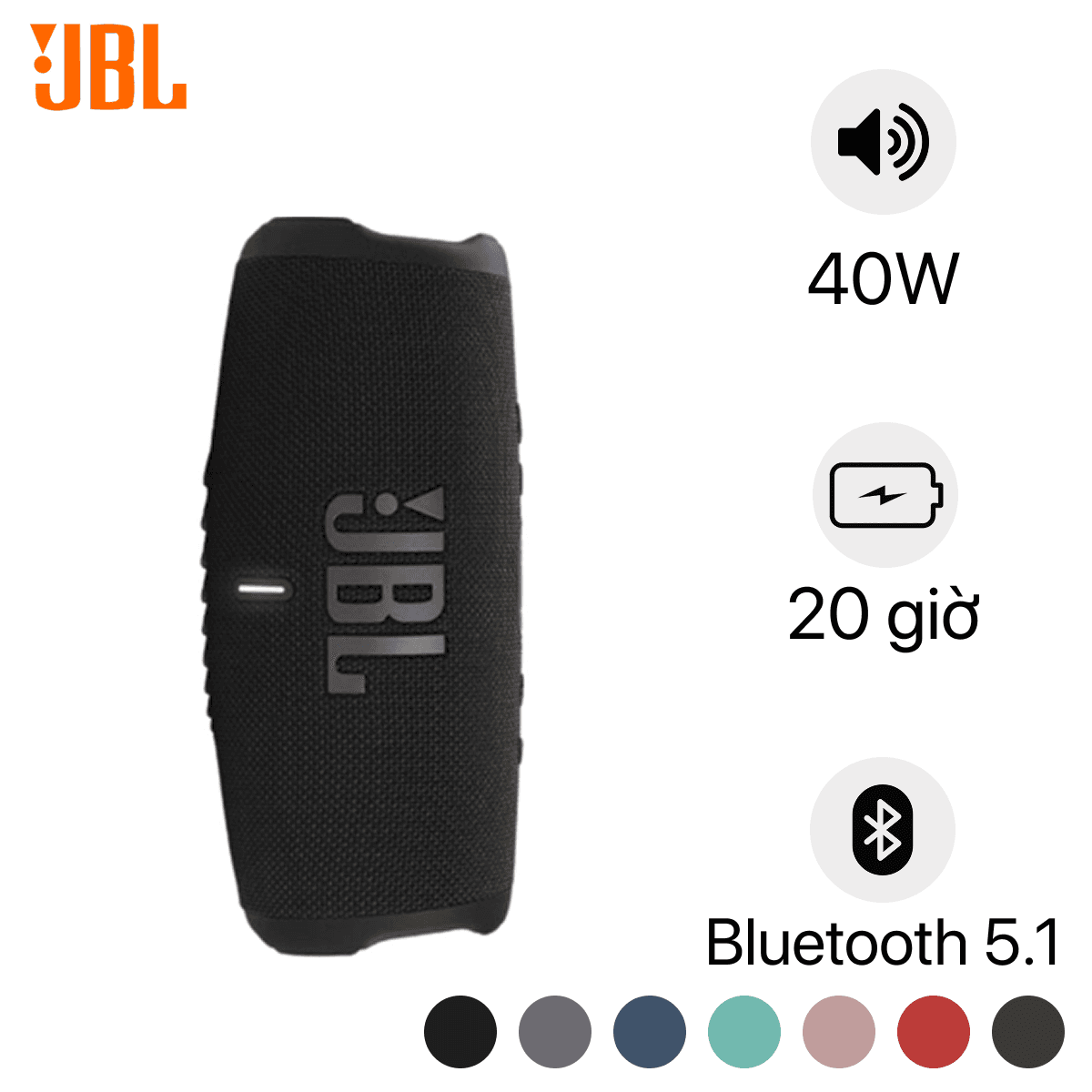 HomeRegistry AssetsJBL CHARGE 5 PORTABLE BLUETOOTH SPEAKER, IP67 WATERPROOF AND DUSTPROOF, 2- WAY SPEAKER SYSTEM, 1 YEAR WARRANTY